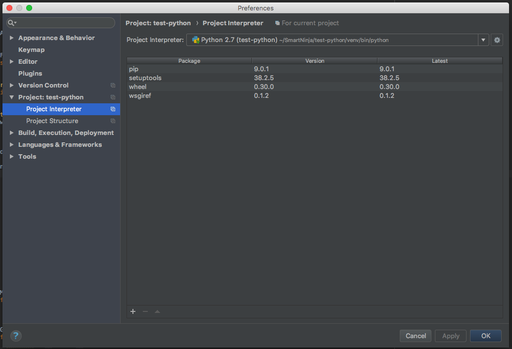 nombre de vuestro proyecto--> Project Interpreter). Verás una ventana como esta:
