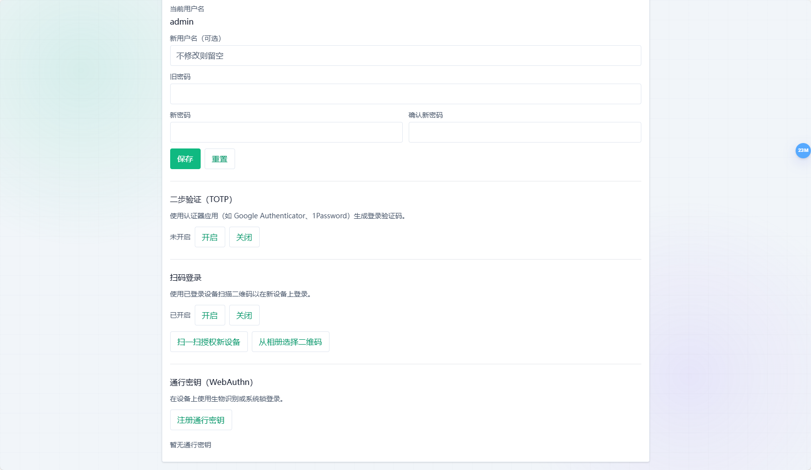 admin/admin,并使现有 Token,totp,webauth失效):yarn reset:admin