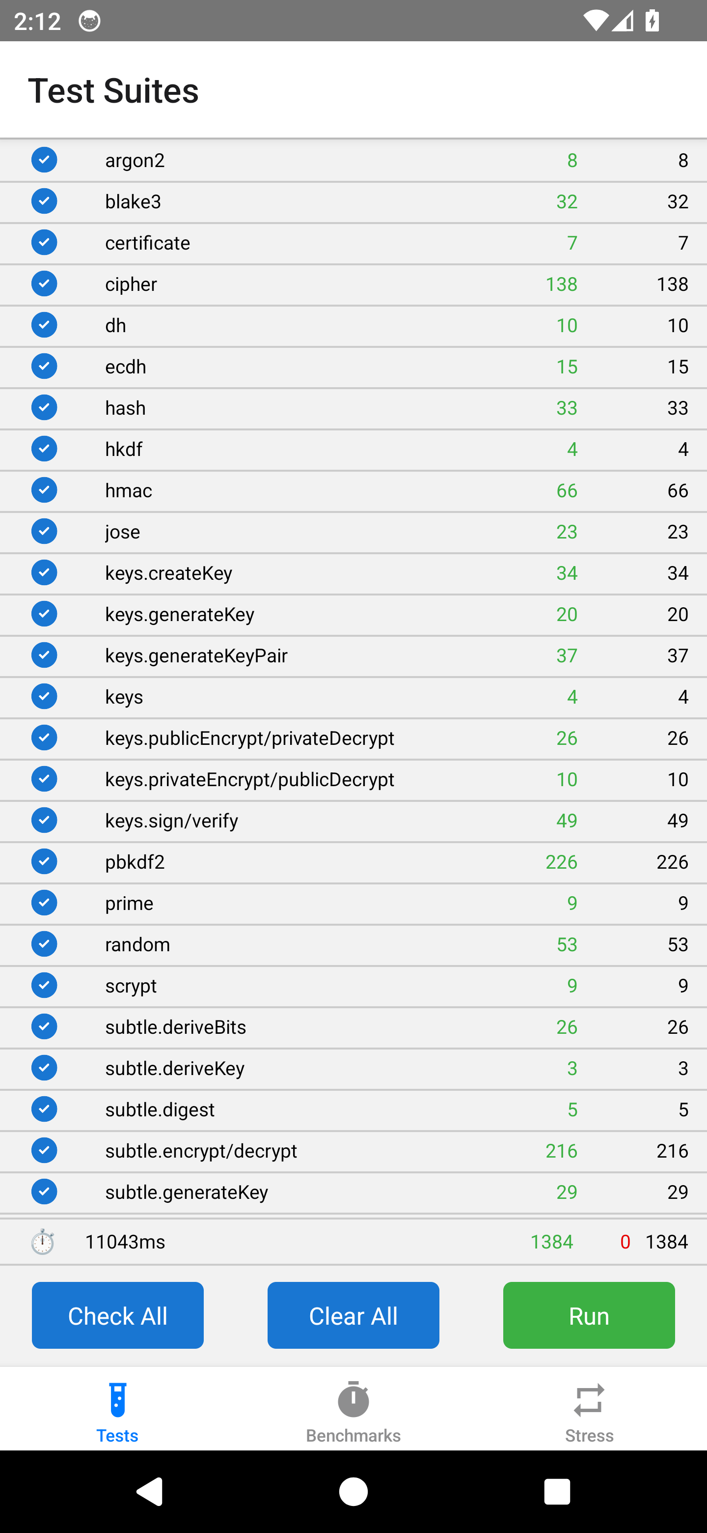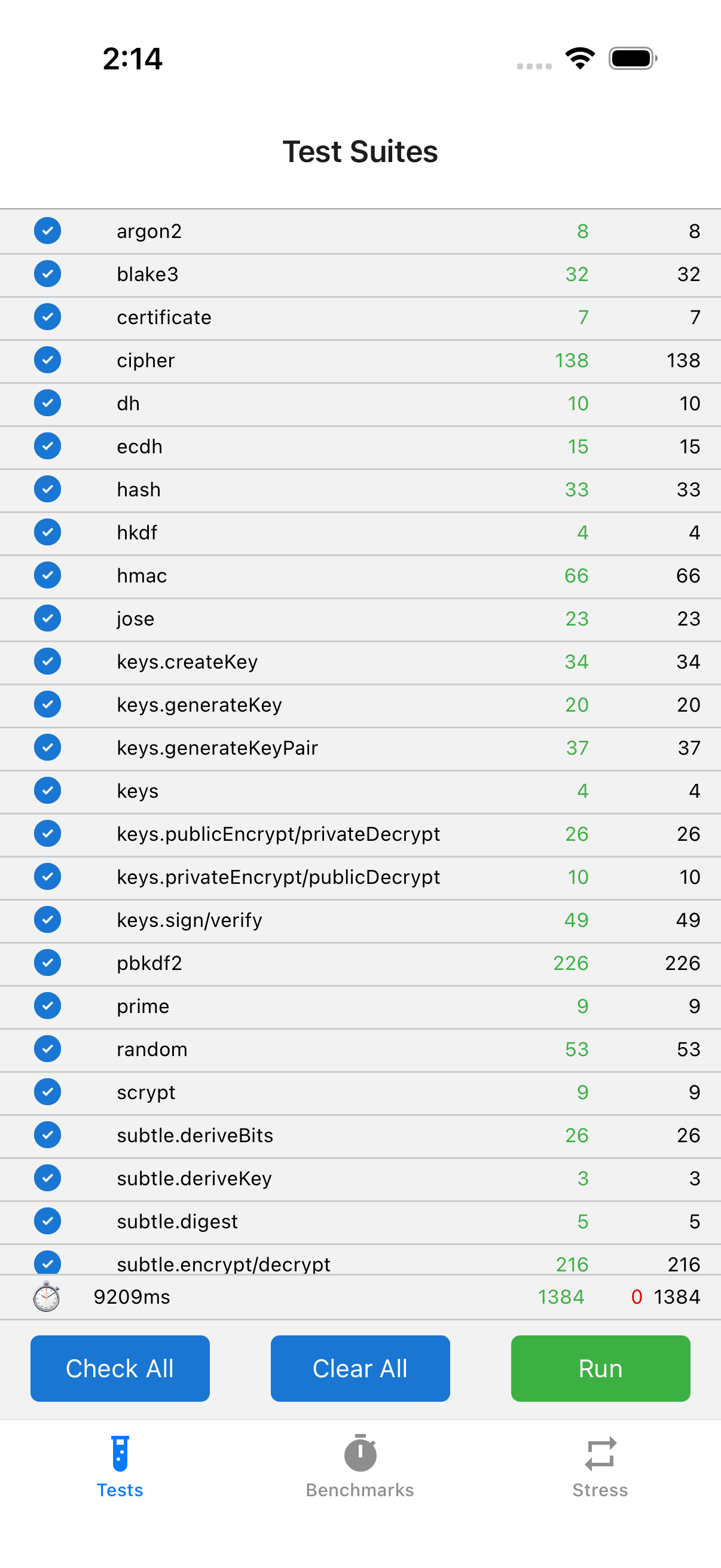 Tests run in the React Native example app. All new tests cover the migrated code paths across multiple EC curves.